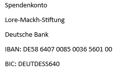 Wenn Sie die Arbeit der Lore-Mackh-Stiftung unterstützen möchten, würden wir uns über eine Spende sehr freuen.